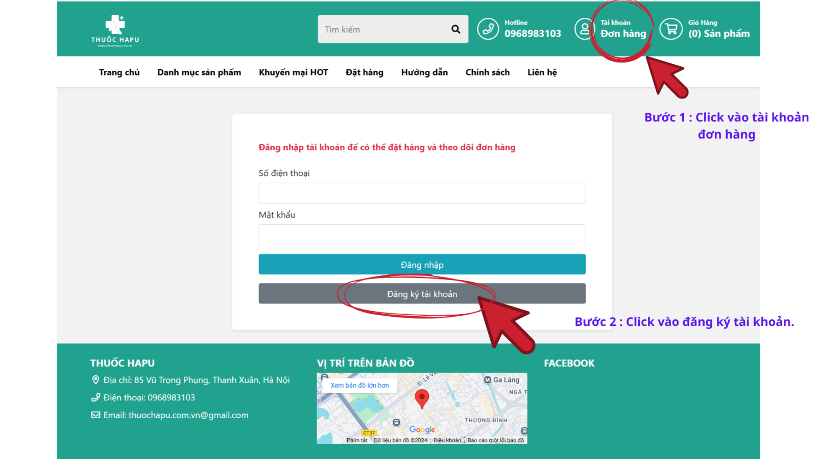 Bạn cần đăng ký tài khoản trên trang web Thuochapu.com.vn để tiến hành đặt hàng.