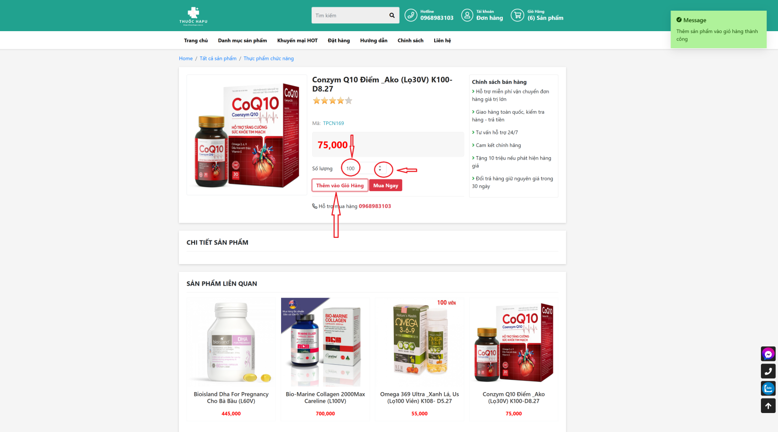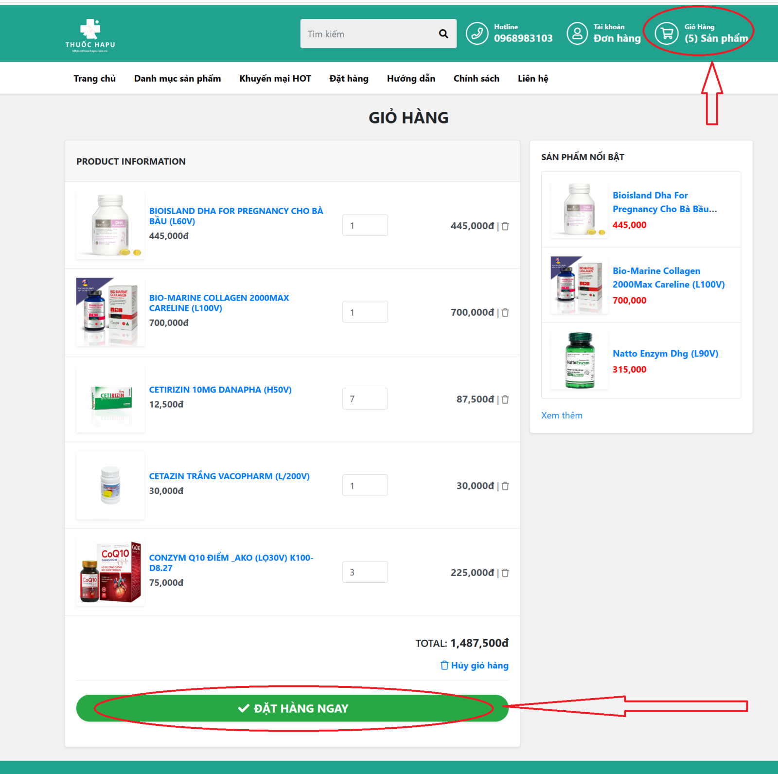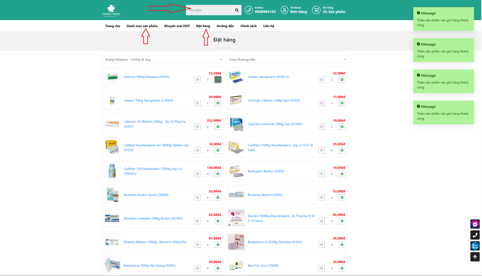 Click vào danh mục sản phẩm, đặt hàng hoặc phần tìm kiếm để lựa chọn sản phẩm cần lên đơn và số lượng rồi tiếnhành đặt hàng, hàng sau khi được lựa chọn thêm vào giỏ hàng của bạn.